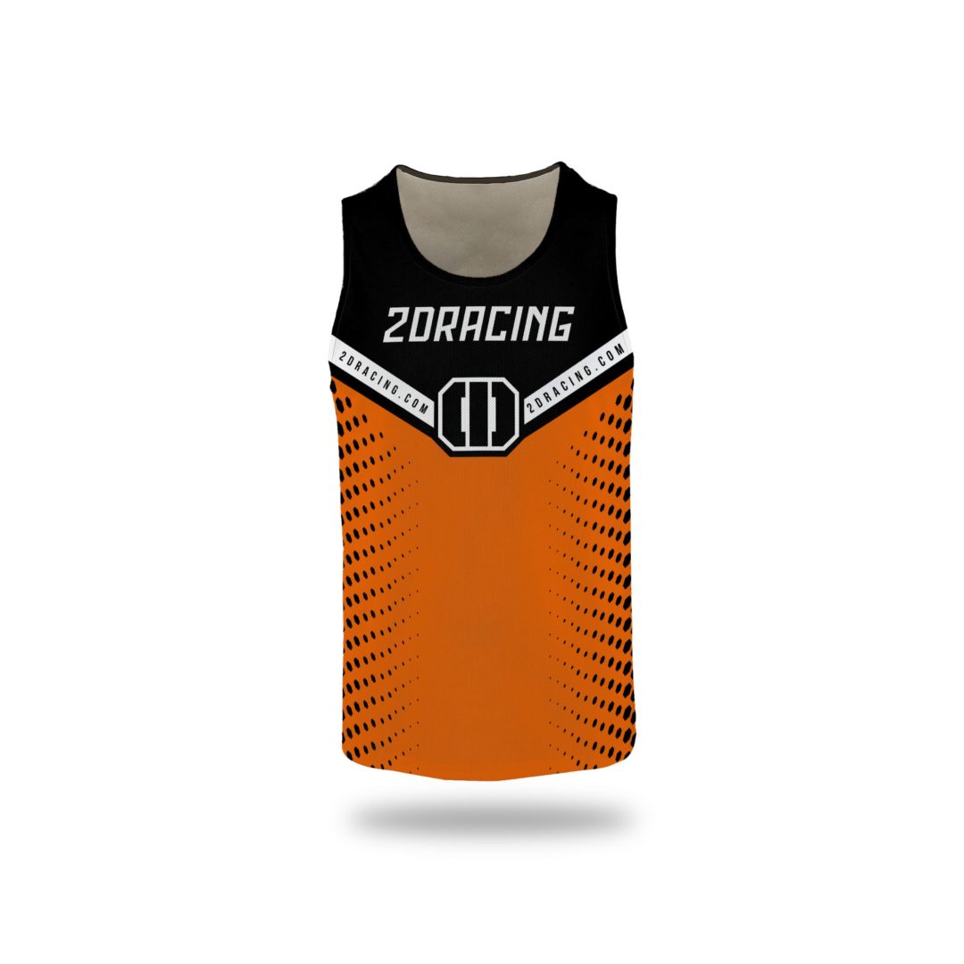 Chasuble col rond sans manches. 100% polyester effet respirant. Col et emmanchures passepoil