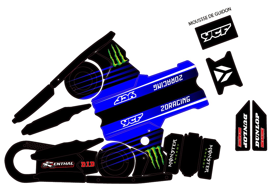 Kit déco adhésif de haute qualité pour draisienne YCF ! Spécialement conçu pour la pratique des sports extrêmes. Facile à poser, sous l’effet de la chaleur l’adhésion de la colle sera renforcée.