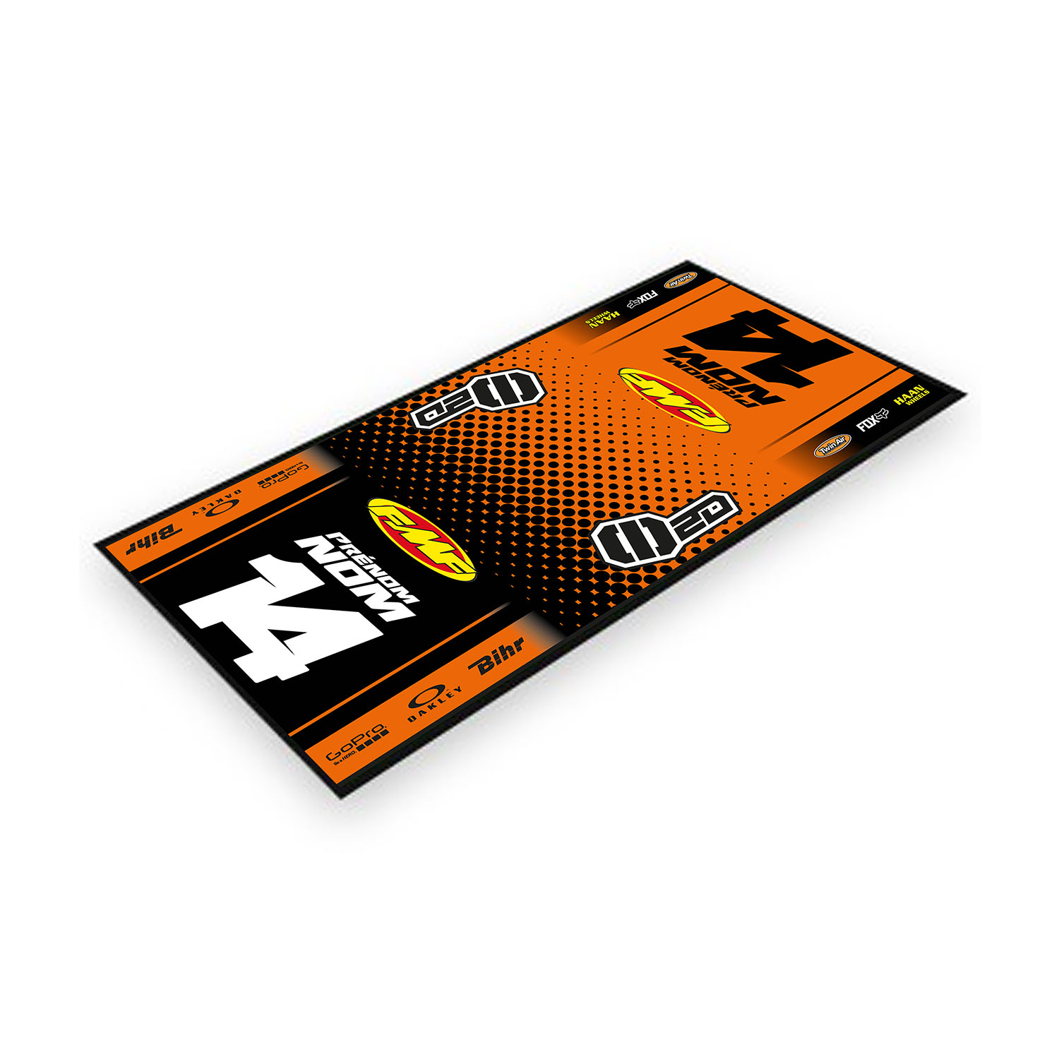 Tapis environnemental personnalisable. – 400g / m². – Epaisseur totale 9mm. Aux Normes FIM d’hydrocarbures. Tapis écologiques de haute qualité, faciles à nettoyer avec un nettoyeur haute pression et garantis pour une longue durée de vie. Tarifs comprenant la création graphique de votre tapis. Délai de production 3-4 semaines après accord BAT.