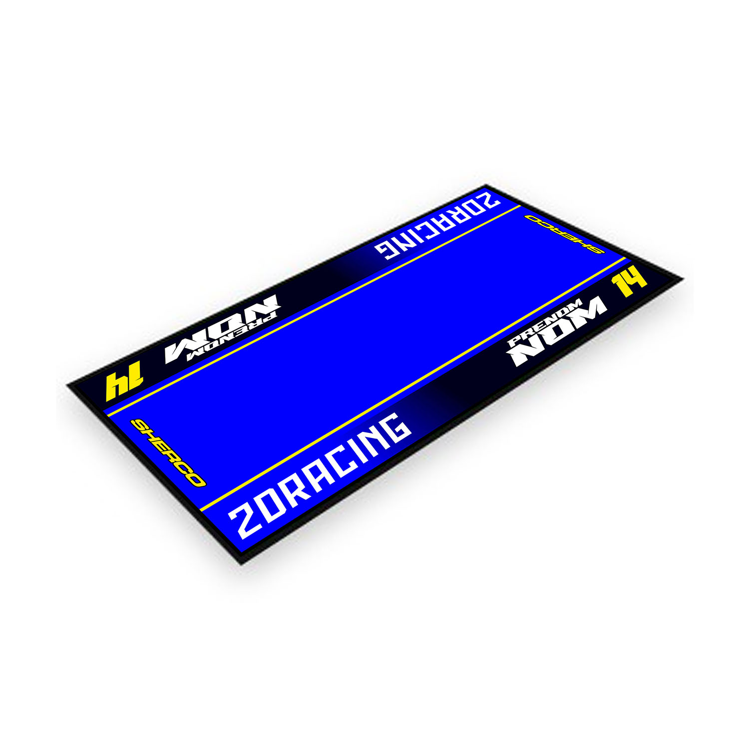 Tapis environnemental personnalisable. – 400g / m². – Epaisseur totale 9mm. Aux Normes FIM d’hydrocarbures. Tapis écologiques de haute qualité, faciles à nettoyer avec un nettoyeur haute pression et garantis pour une longue durée de vie. Tarifs comprenant la création graphique de votre tapis. Délai de production 3-4 semaines après accord BAT.